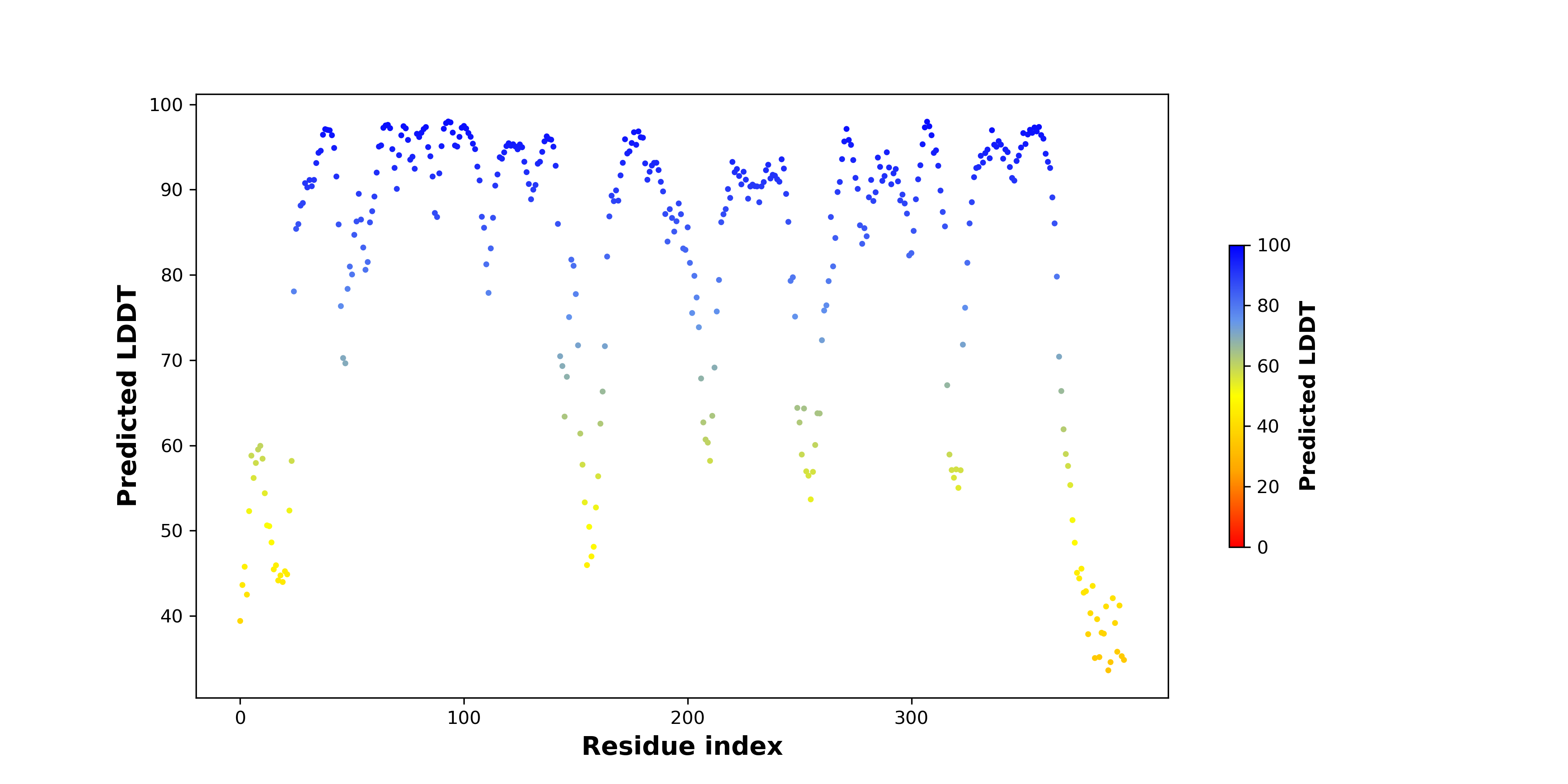 ![]() * AlphaFold produces a per-residue confidence score (pLDDT) between 0 and 100. |