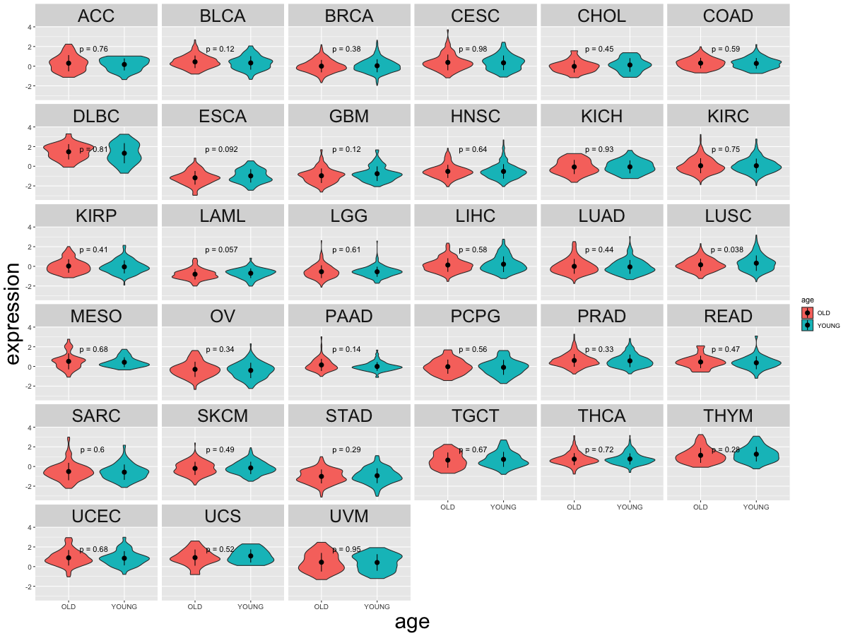 Differential gene expression between young and old age groups (Wilcoxon test, pval<0.05) |